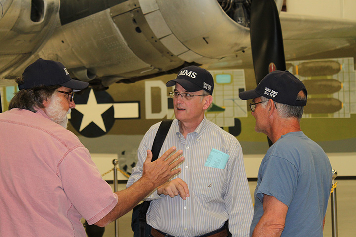 - The guys pose in front of the B-17 on display (L-R): Chuck Schabel, Craig Meyers, Sam Bothern, Paul Baker, Museum volunteer, Bill Woodward, Steve Bisel, Steve Carr, Bob Roberts & Jim Jenkins